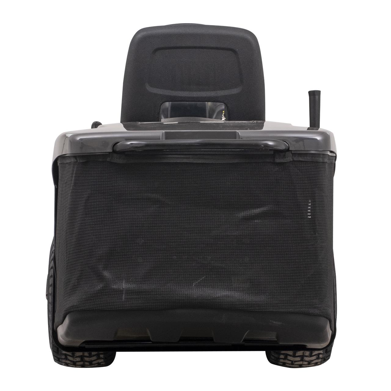 Das 98 cm breite Mähdeck ist mit zwei Messern und Anti-Skalp-Rädern ausgestattet. Die Schnitthöhe kann in 7 verschiedenen Stufen von 25 bis 80 mm eingestellt werden, um den jeweiligen Rasenbedingungen besser gerecht zu werden. Die Klingen werden über eine elektromagnetische Kupplung ohne Kraftaufwand und ohne Drücken oder Ziehen eines Hebels aktiviert. Der Grasfangkorb kann bis zu 240 Liter Schnittgut aufnehmen, um eine lange durchgehende Nutzung zu gewährleisten, ohne dass der Sack schnell voll wird und geleert werden muss. Der ergonomisch geformte Sitz mit hoher Rückenlehne und das weiche Lenkrad bieten zusätzlichen Komfort.