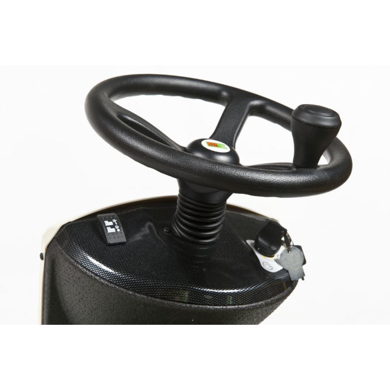 Automatisch Blitzschnelle Fahrtrichtungsänderung und promptes Anhalten. Das über Pedale gesteuerte Hydrostatgetriebe ermöglicht jedes Manöver.
